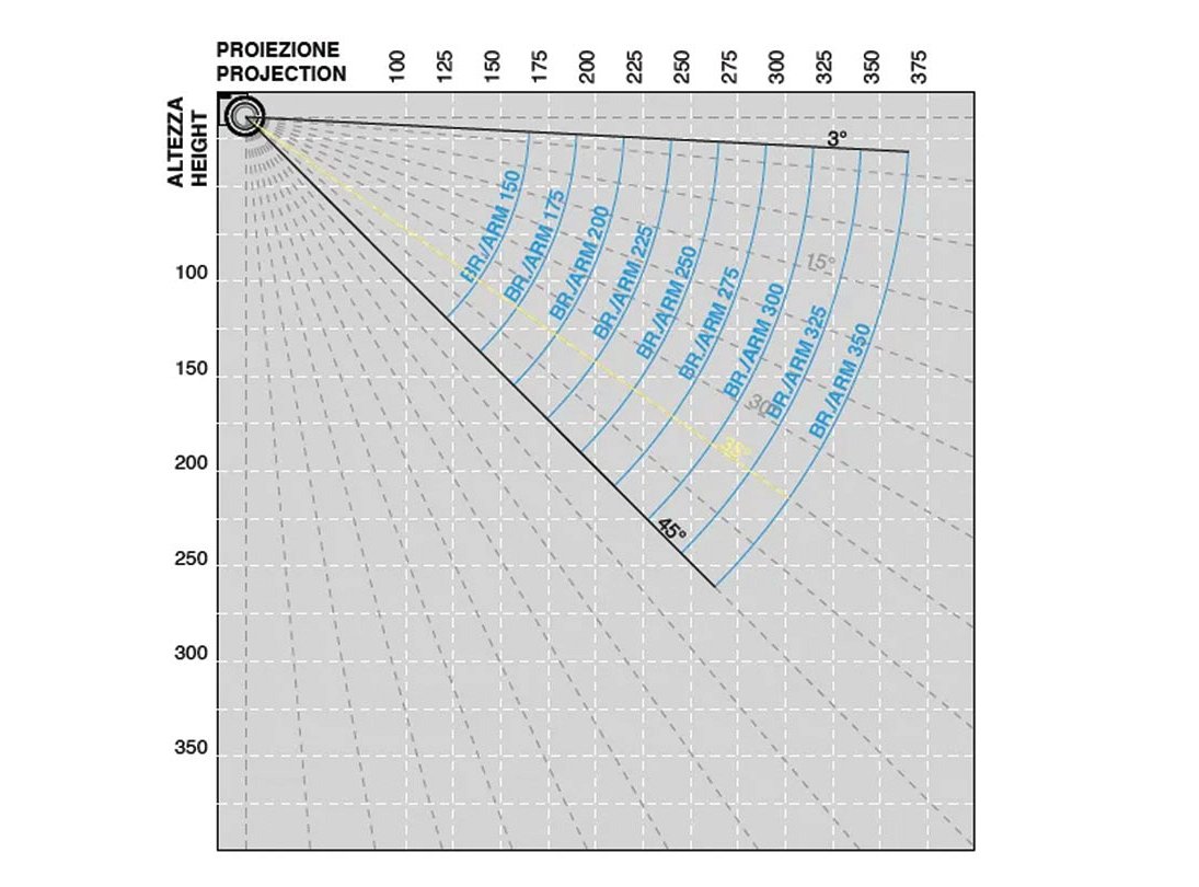 The system accommodates various installation requirements with adjustable slope and projection capabilities. The permissible slope ensures optimal water drainage and system performance, while the projection allows for flexible coverage and adaptation to the specific needs of the space.