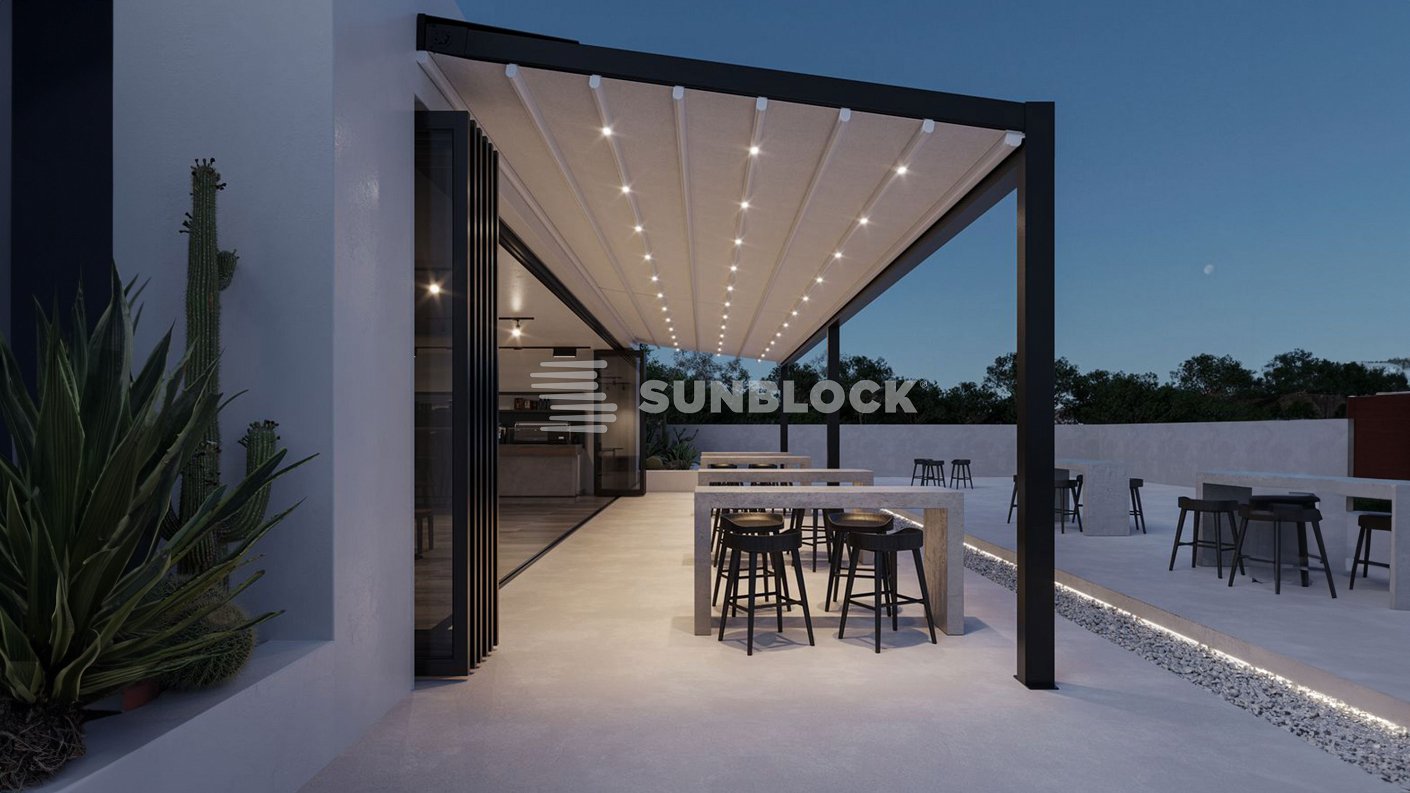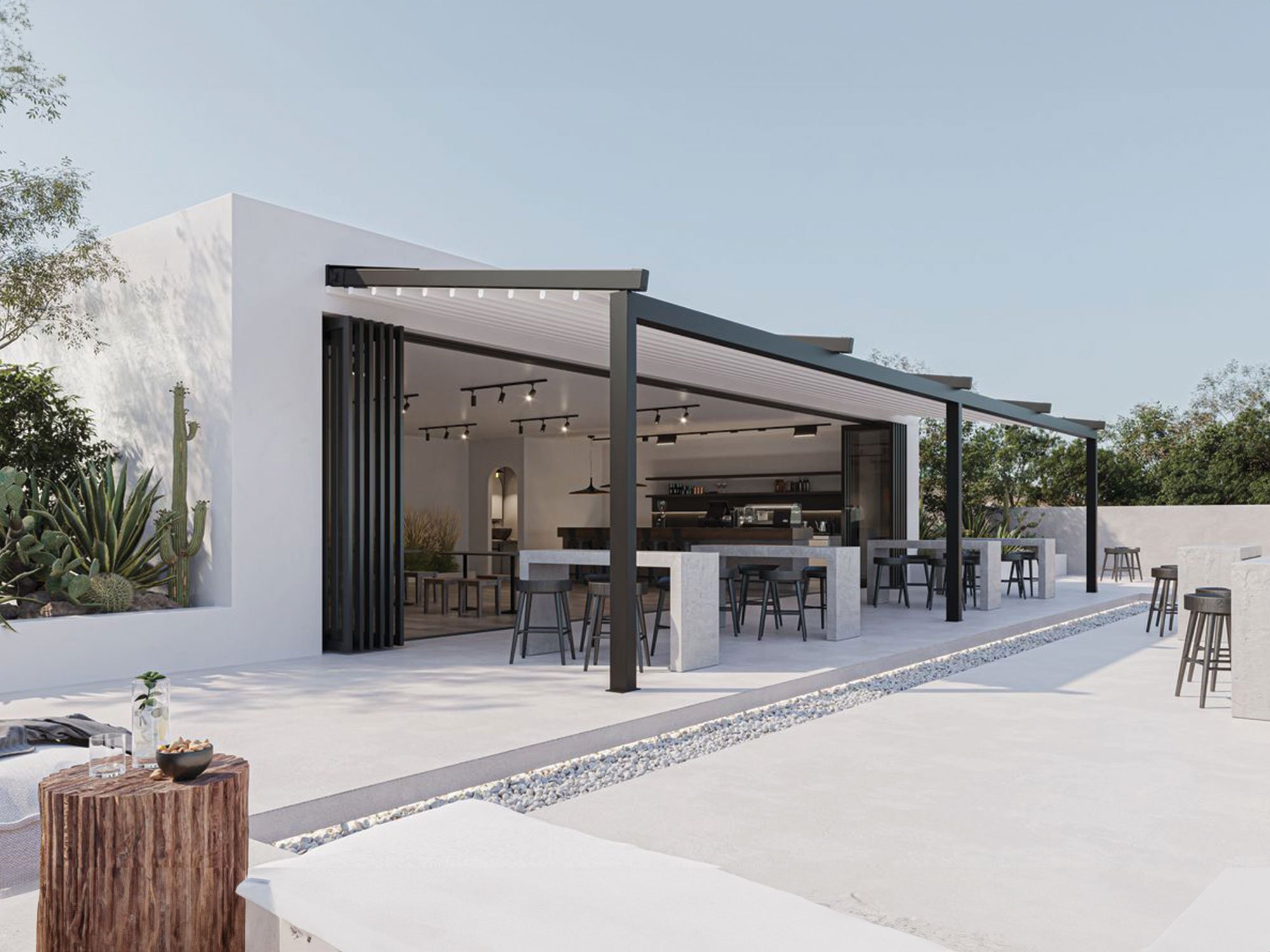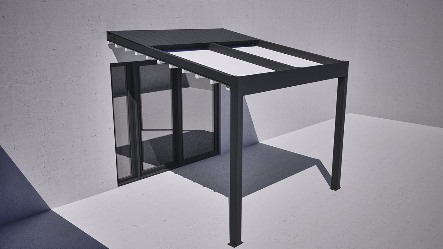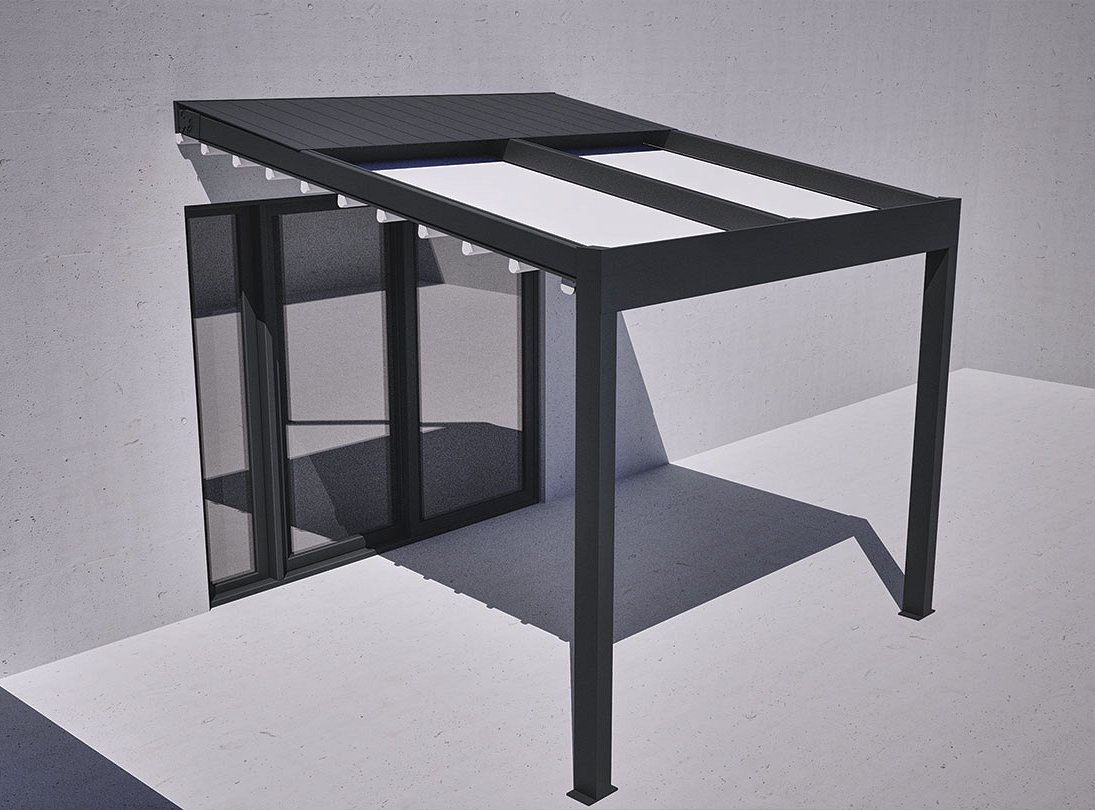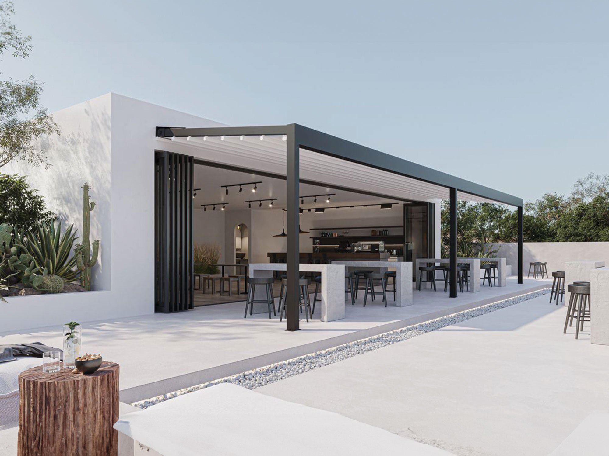 Fusion: The pergola that integrates a versatile adjustment mechanism, allowing customization to fit the user's needs and preferences. Whether for luxury penthouses, courtyards, terraces, or commercial dining spaces, Fusion provides unparalleled coverage and protection.