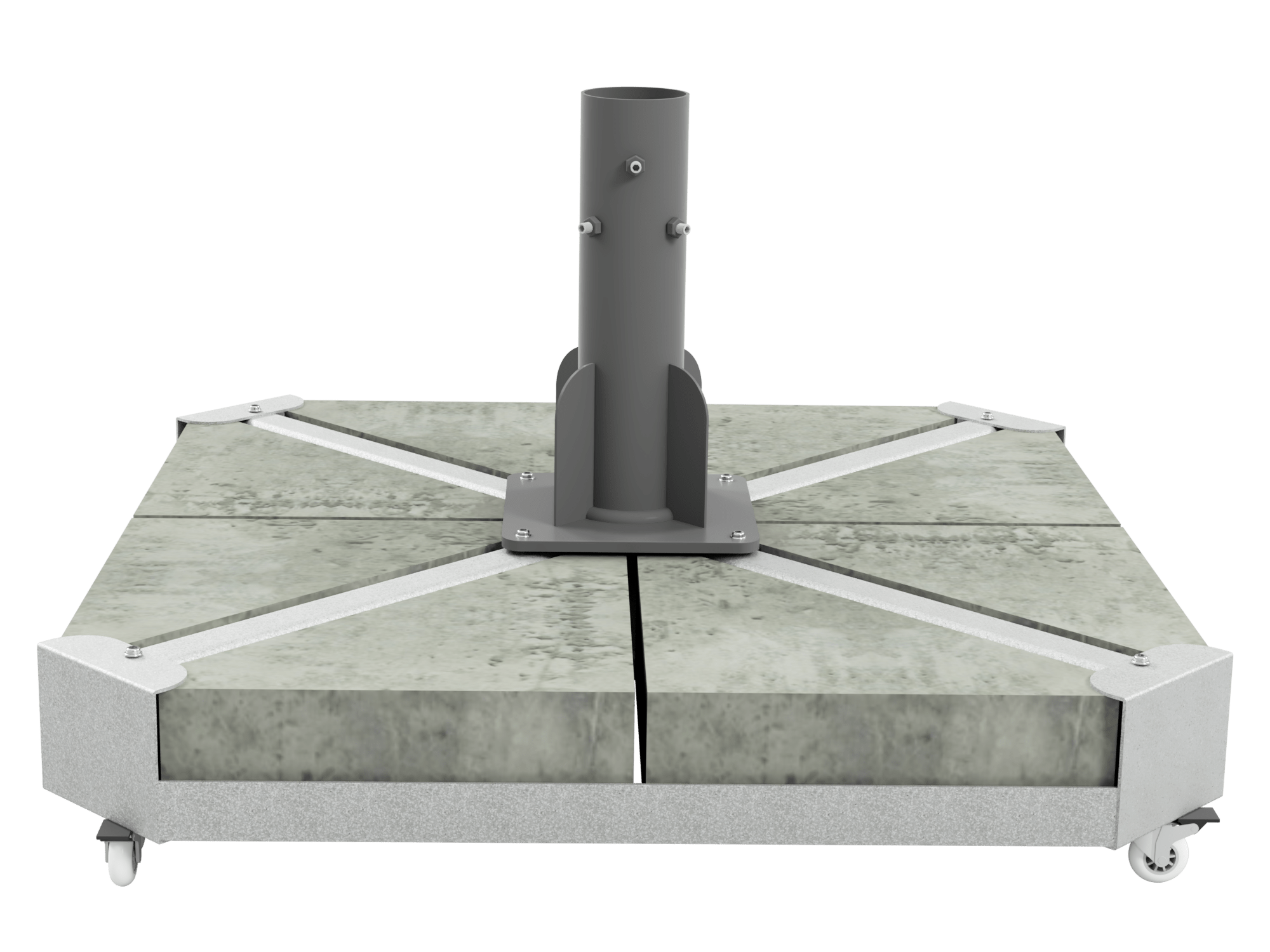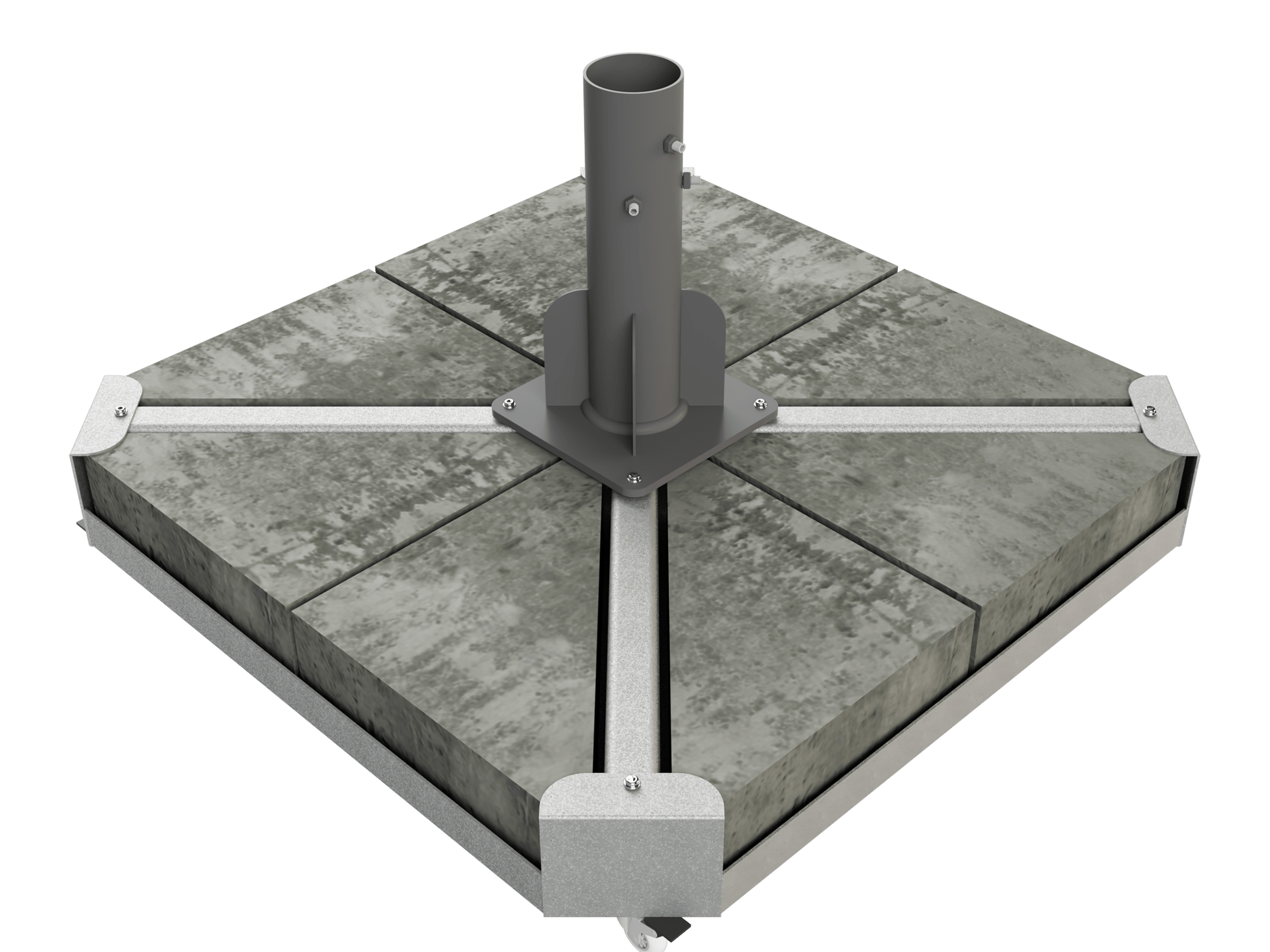 The Herc umbrella base is designed to provide ultimate stability. Made of metal and designed to accommodate 8 pavers in a triangular shape, this base measures 100x100 cm and weighs 220 kg, making it ideal for heavy and large umbrellas.