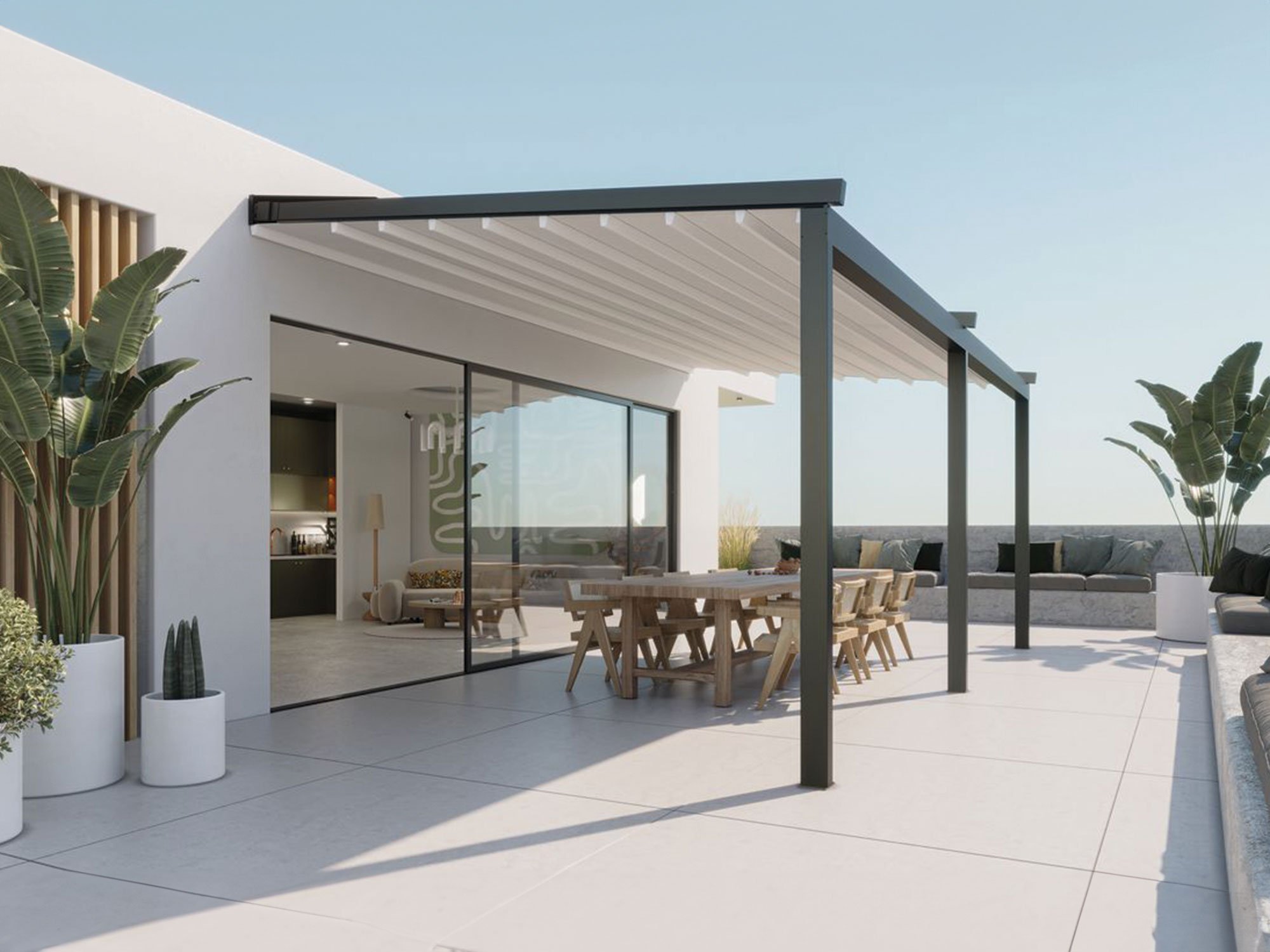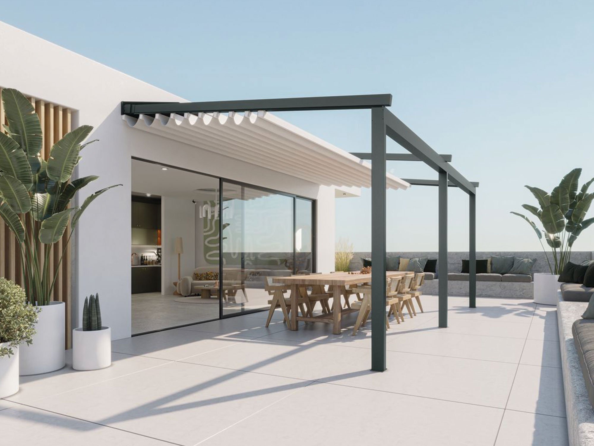 The Pergola Nook offers exceptional shading and reliable rain protection, ensuring your outdoor spaces remain functional regardless of the weather. Its flexibility in design allows easy adaptation to various types of spaces, from luxurious balconies and penthouses to small terraces and courtyards, making it perfect for any need.
