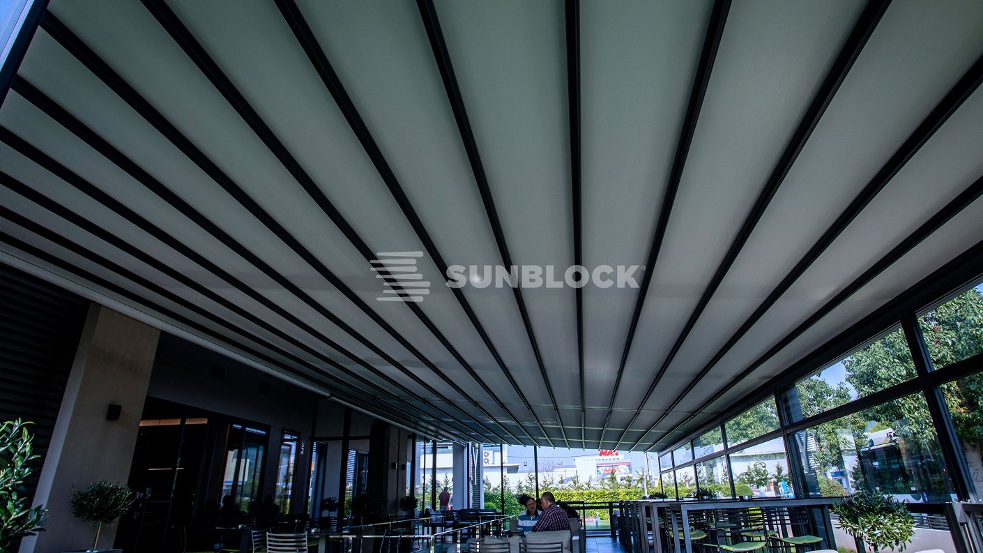 The Opus pergola is an exceptionally durable aluminum pergola with heavy-duty PVC fabric, designed to provide top-notch shading for large commercial or residential spaces.
