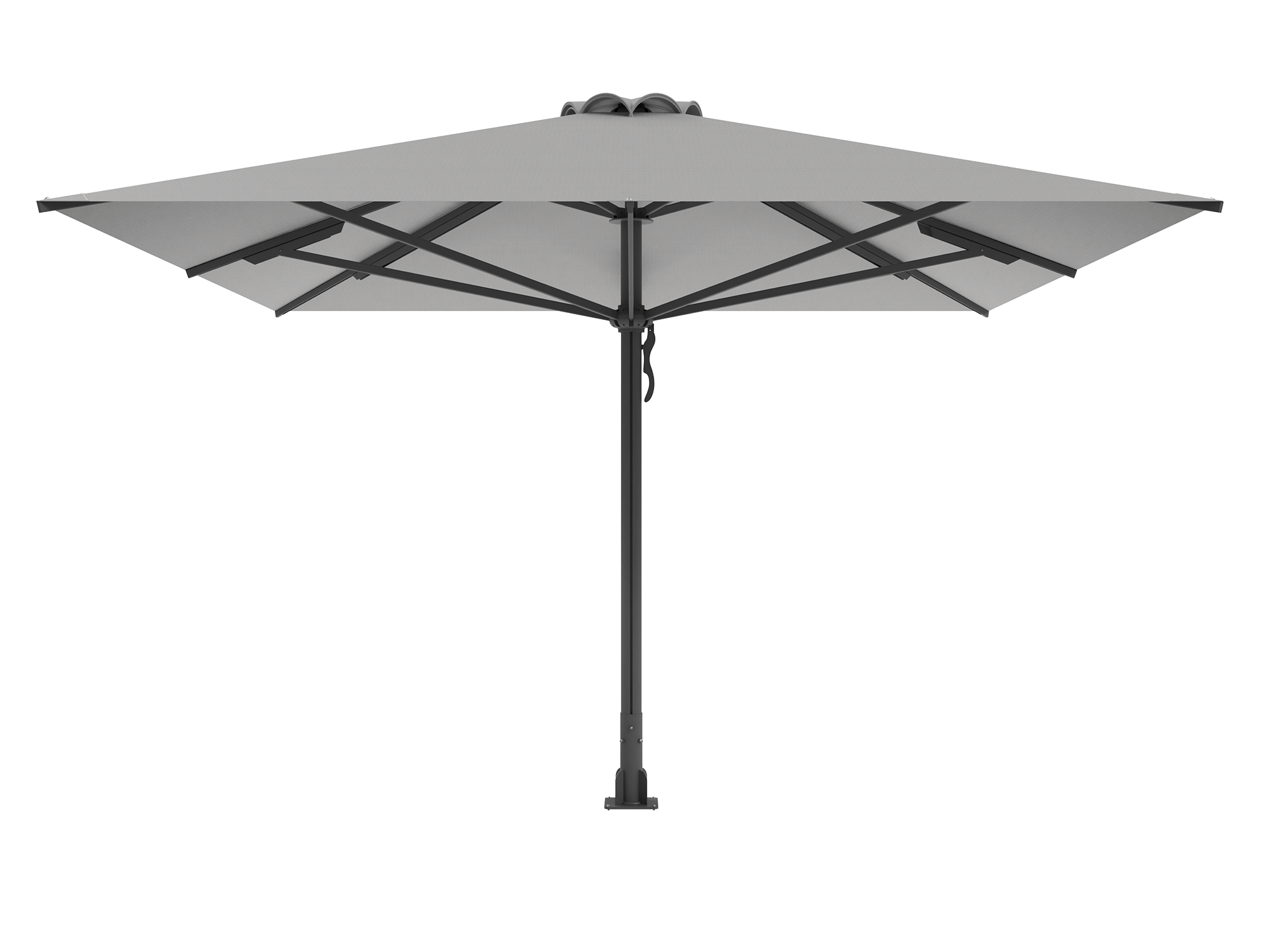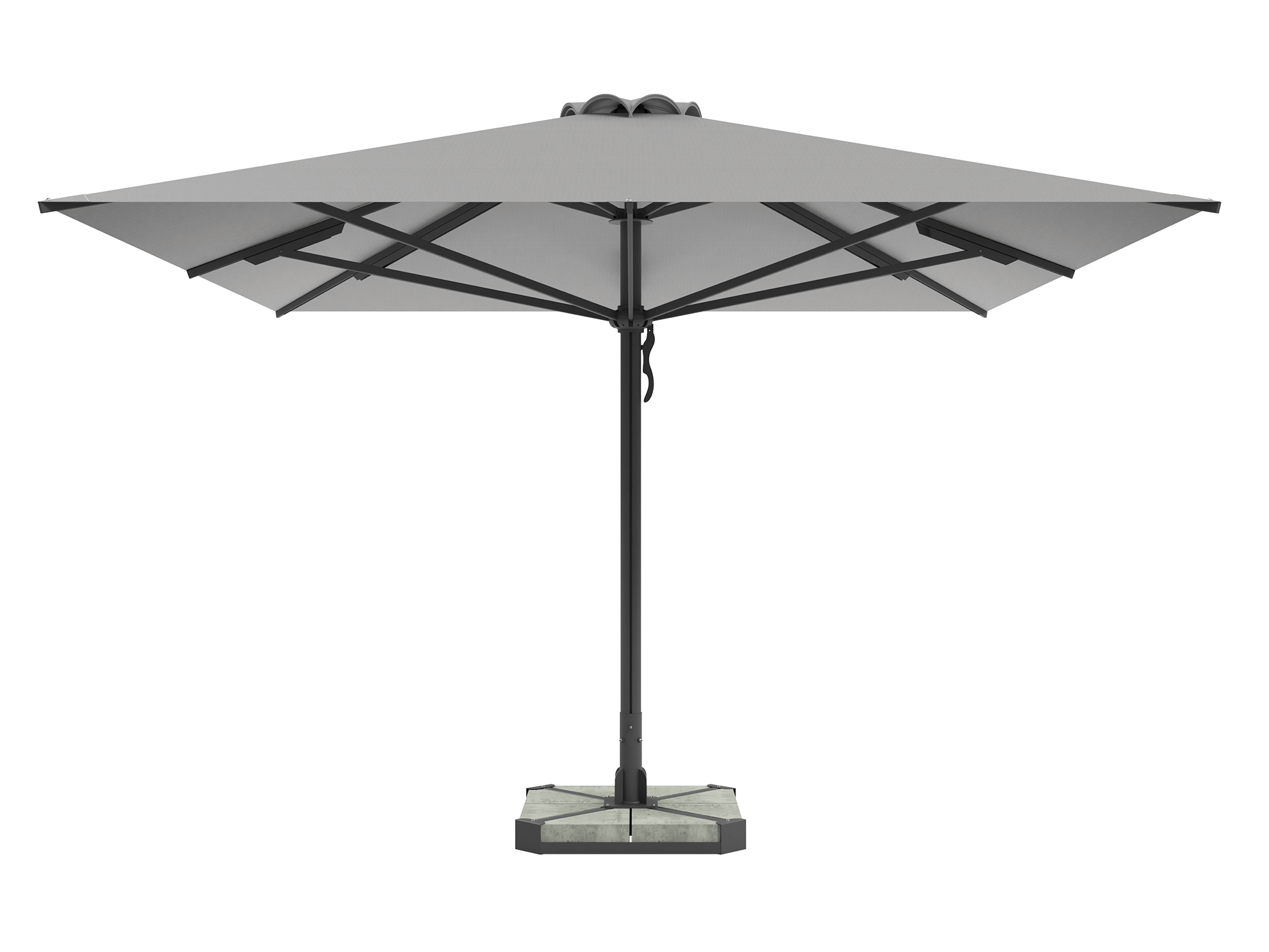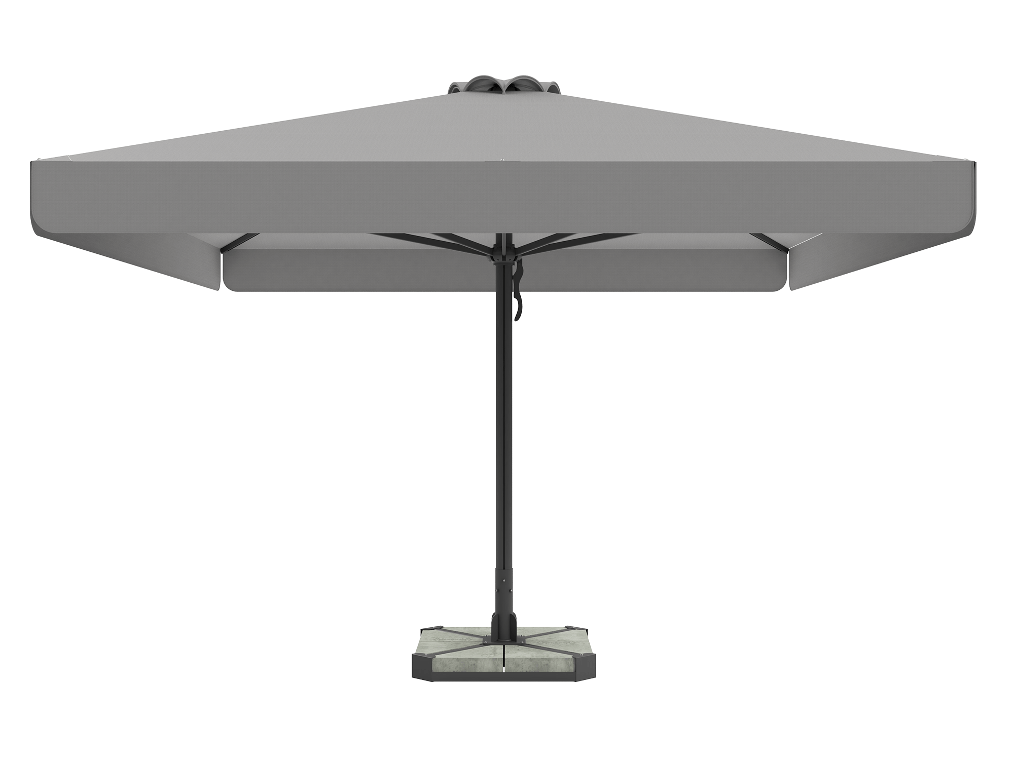 Base compatible with Queen and Grand umbrellas, featuring a square mounting plate.