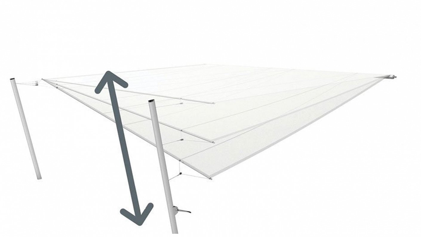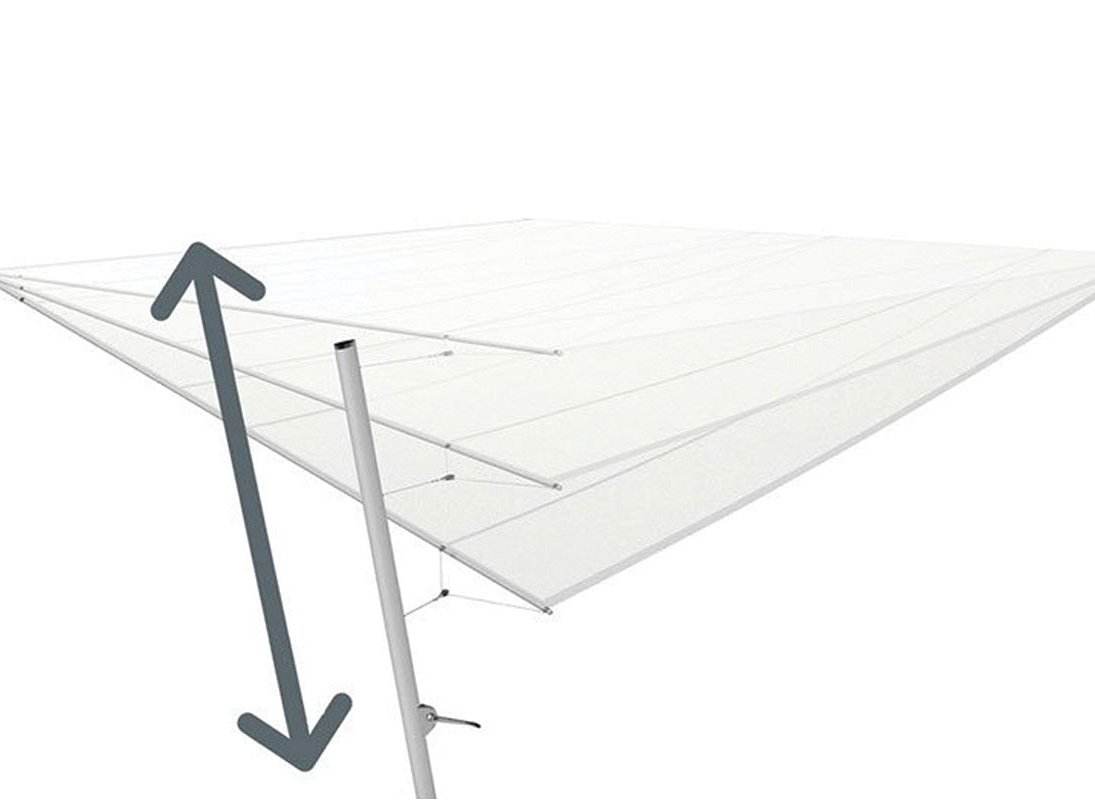The Soliday CS is a retractable sail that wraps around an axis mounted on the wall and provides an elegant and functional solution for terraces and gardens that need shading.