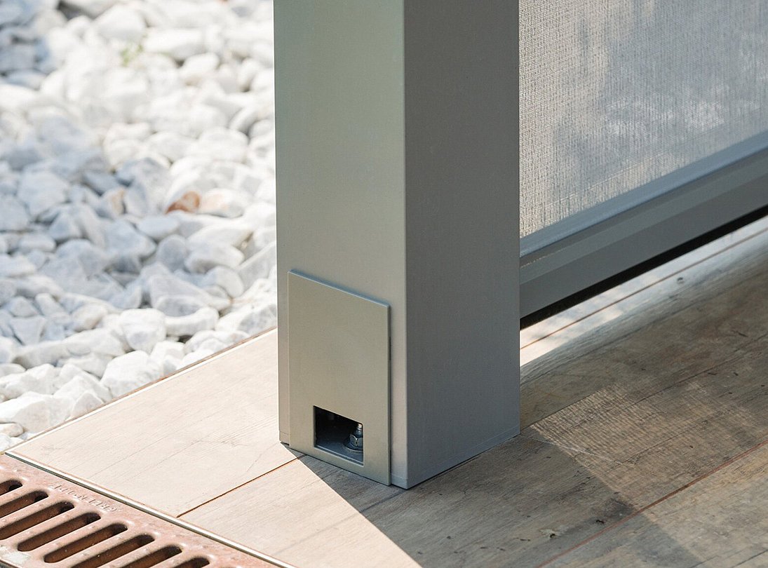 The structure allows for the installation of perimeter protection and shading systems, such as Zip Screens or doors with glass closures. These options provide excellent protection from the sun, wind, and rain, while maintaining the sense of openness and unobstructed views.