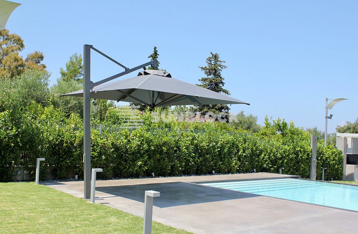 Ο σύγχρονος σχεδιασμός των ομπρελών RIO με πλαινή κολώνα εξασφαλίζει μια εκλεπτυσμένη αισθητική που ενσωματώνεται αρμονικά με κάθε περιβάλλον. Η μικρή τους απαίτηση χώρου τις καθιστά ιδανικές για χρήση σε περιορισμένους χώρους χωρίς να θυσιάζεται η λειτουργικότητα ή η εμφάνιση.