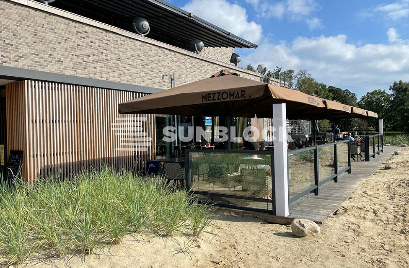 Η αλυσίδα εστιατορίων MEZZOMAR επέλεξε τις τηλεσκοπικές ομπρέλες QUEEN, τα διαχωριστικά FALL 180 και την πέργκολα Bridge χωρίς κολόνες από την εταιρία μας για την στέγανοποίηση του εξωτερικού χώρου των καταστημάτων της στη Γερμανία. Η επιλογή αυτών των προϊόντων έχει ζωτική σημασία για την κατάλληλη λειτουργία των εστιατορίων, προσφέροντας αποτελεσματική σκίαση και προστασία από τις καιρικές συνθήκες. Αυτά τα προϊόντα δεν είναι μόνο στιλάτα, αλλά και απαραίτητα εργαλεία για να διασφαλίζεται η άνετη και απολαυστική εμπειρία των πελατών κάθε μέρα.