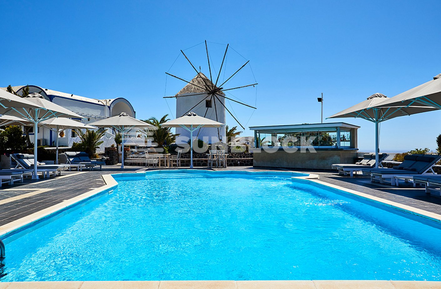Σε ένα αυθεντικό κυκλαδίτικο συγκρότημα στη Σαντορίνη, δίπλα στην πισίνα δεσπόζει ένας παραδοσιακός ανεμόμυλος 250 ετών, ανακαινισμένος με σεβασμό στην ιστορία και την αρχιτεκτονική του τόπου. Η θέα από τη βεράντα του εκτείνεται σε ολόκληρο το νησί, προσφέροντας μοναδική εμπειρία φιλοξενίας.